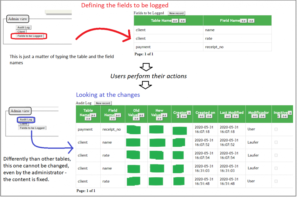 - When Admin wants, he can just click on the Audit Log button and you are going to see the table